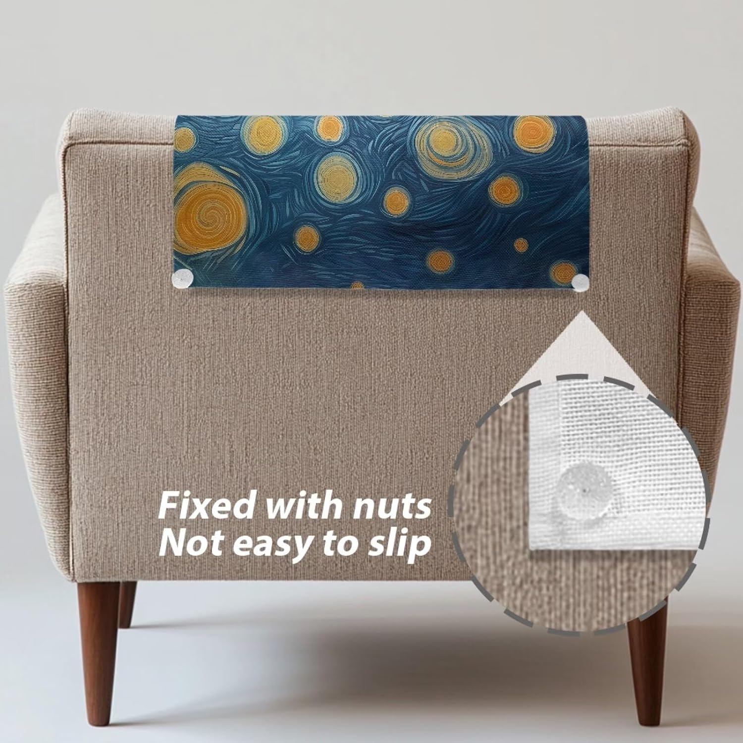 Psesaysky Recliner Headrest Cover Non Slip Sofa Head Protector with Fixing Nails 【Preferred material】 The material is thick and comfortable, the fabric is skin-friendly and breathable, as delicate as milk, wrinkle-resistant and washable, moisture-absorbent and breathable, quick-drying and easy to clean. 【Anti-slip design】 Can fit the sofa headrest firmly to prevent sliding, suitable size, the sofa headrest cover is not easy to wrinkle 【Exquisite Craftsmanship】 Neat edging, fine stitching, not easy to shed or fall off, not easy to draw or fade. 【Product Use】 Reduce damage, elastic, not only can protect your new sofa from dust and pets, but also can decorate your old sofa. 【Applicable Scenarios】 It is compatible with most sofa headrests and can be used in homes, restaurants, hotels, weddings, banquets, dinners, meetings, celebrations, ceremonies and home restaurant decorations, etc. 【Washing Instructions】 Can be hand washed, do not soak for a long time, do not bleach, the washing liquid temperature cannot exceed 45ºC.