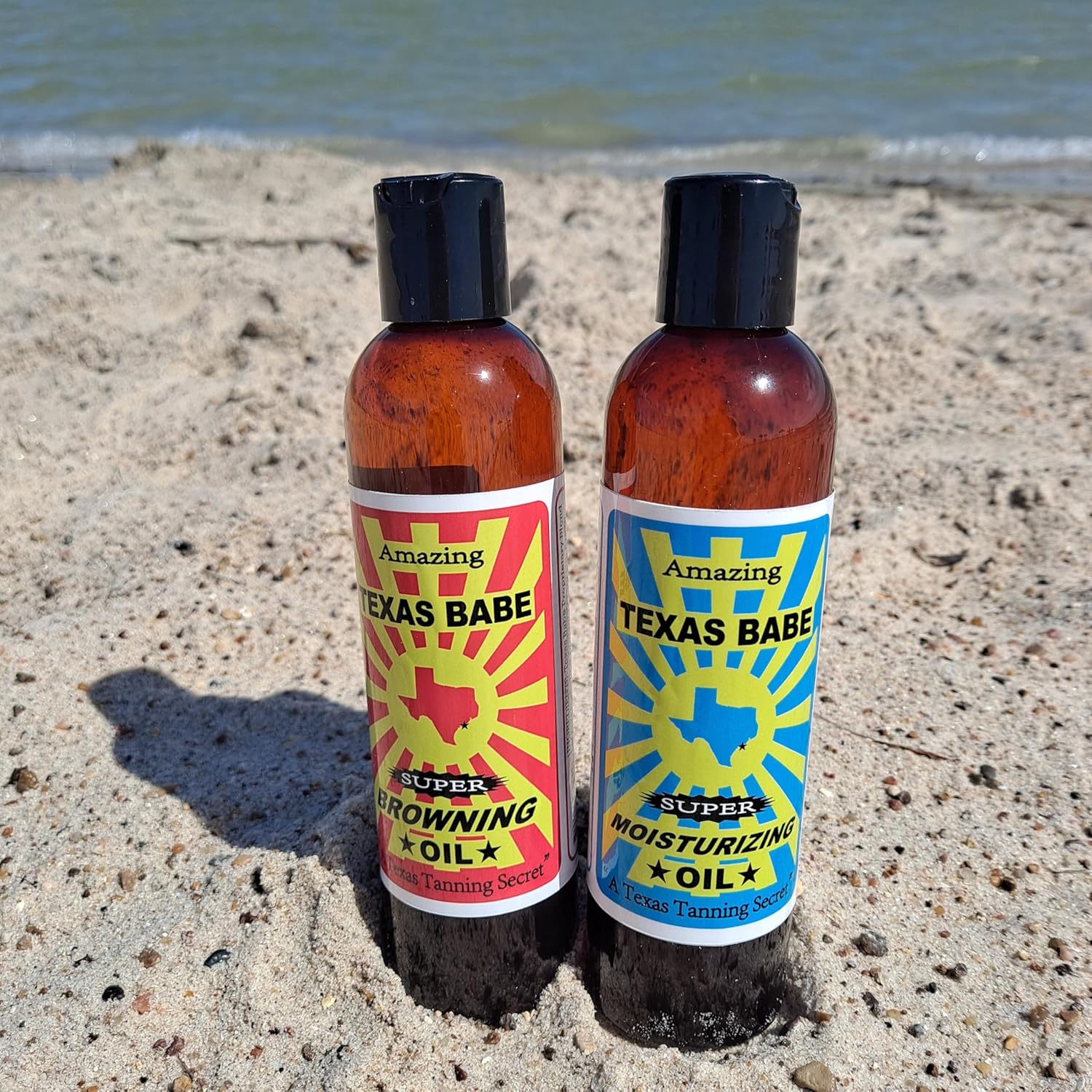 Twin Pack - Texas Babe Tanning Oil and Moisturizing Oil - 8 ounce each This listing is for 2 full 8 ounce bottles - 1 bottle each of our AMAZING - TEXAS BABE TANNING OIL & Moisturizing Oil Hand Made in Texas using a secret family formula of Natural Ingredients. This is a “Browning Oil” that will help you tan darker and faster. Natural oils provide skin protection and moisturizing benefits to promote a deep, dark, long lasting tan with just a short time in the sun. TEXAS BABE Browning Oil helps you tan faster; it is not a stain or self tanner. To Use: Apply generously. Beginners max sun time: One Hour. Can be used with all sunscreens. We recommend you apply sunscreen first, then our TEXAS BABE Browning Oil. Reapply often and after swimming for best results. “BEST TANNING OIL ON THE PLANET!” Try it NOW! You will love it and be back for more! EXCELLENT IN TANNING BEDS. INGREDIENTS: Texas Babe Proprietary Blend of Oils including Apricot Kernel Oil, Argan Oil, Avocado Oil, Carrot Seed Oil, Coconut Oil, Golden Jojoba Oil, Olive Oil, Sunflower Oil, Sweet Almond Oil, Wheat Germ Oil, Antioxidant Vitamin E, Fragrance 8 oz ea